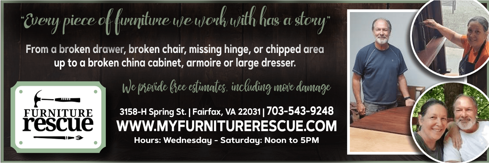 Joni and Dave, the Furniture Rescuers, impart their expertise and confidence to their customers who are looking for a new pre-loved piece of furniture or home decor. They run a dynamic showroom, surrounded by repairs, painting, refinishing and even repurposing old furniture from well-loved to new again. The warehouse in Fairfax is dedicated to both furniture for sale and their furniture rescue services. Both Joni and Dave are Environmental Scientists and natural problem solvers who turned their skills, energy, and passion to furniture. Joni puts it simply, “We love keeping furniture in your home and out of the landfill.”
