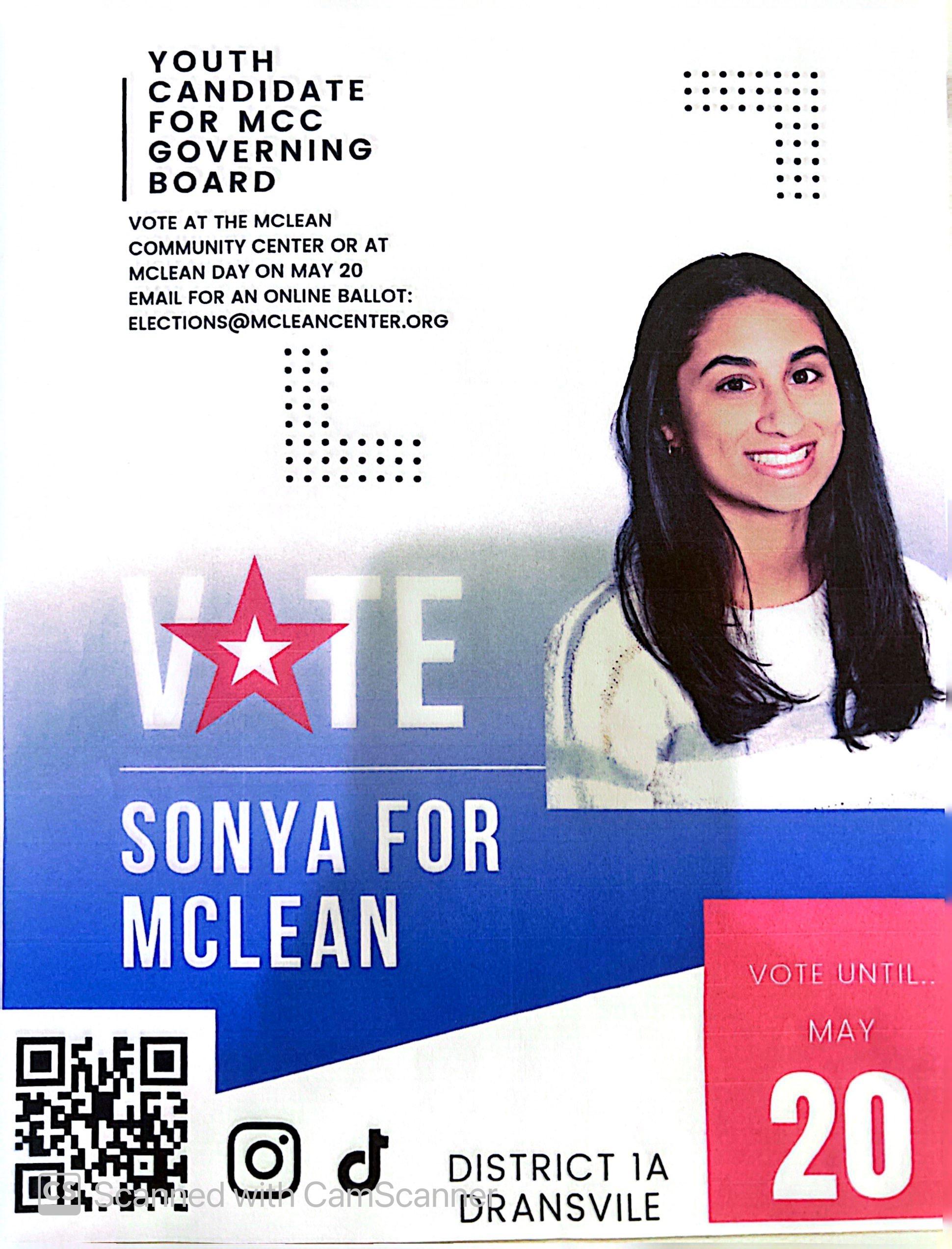 Hello McLean Community! My name is Sonya Thott, and I am thrilled to be running for the McLean Community Center Youth Candidate position on their governing board as a sophomore at Langley High School. As a dedicated member of the community, I am passionate about promoting cultural diversity, inclusivity, mental and physical wellness, and giving back through volunteerism.