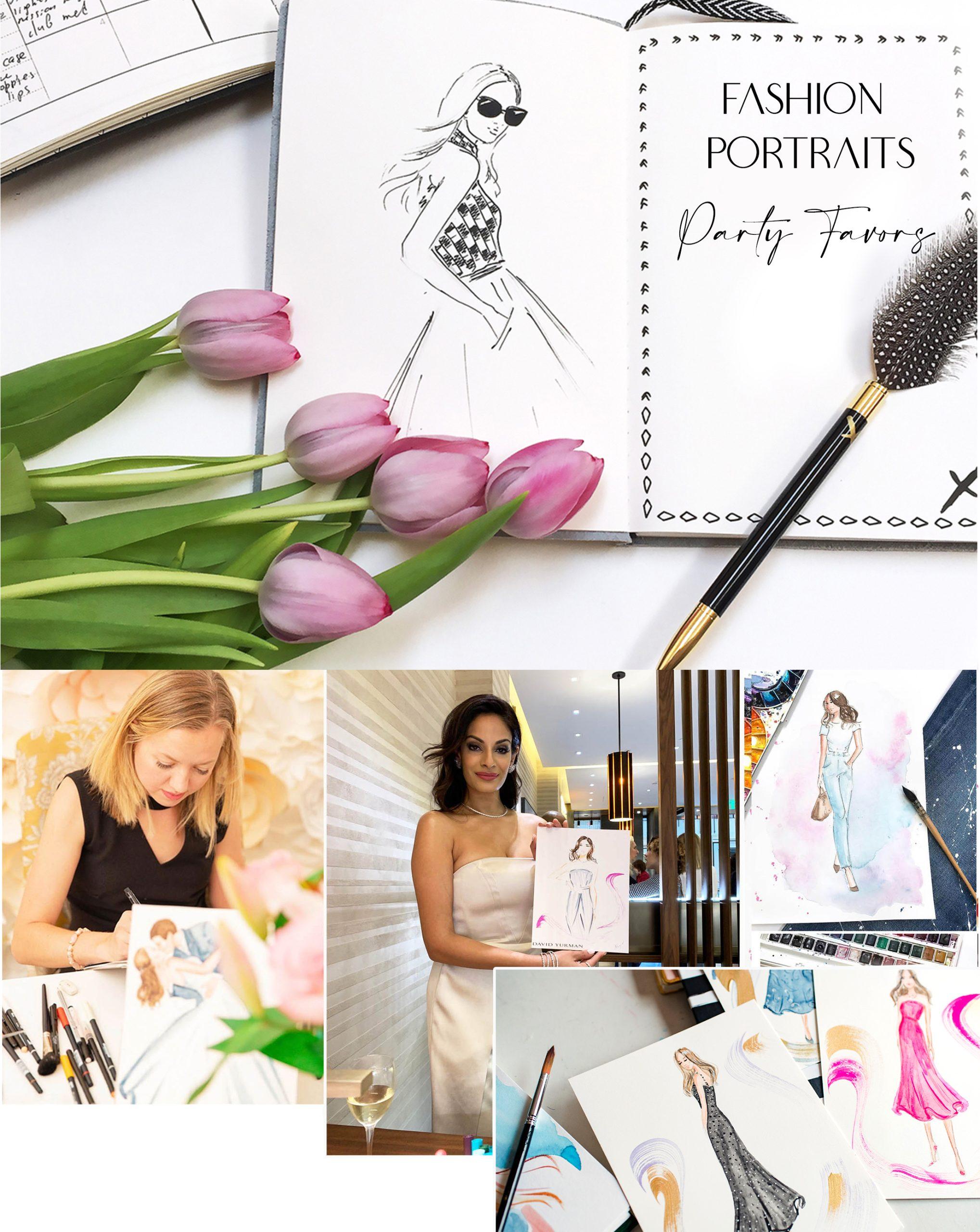 Elena Fay is a fashion illustrator, live event artist and mom based in Maryland, US. She is a self-taught artist and entrepreneur who started her journey in 2013 by posting cute little sketches on her blog and Instagram. Back then, a few local boutiques asked her to sketch guests at their private events and Elena found her true love for live event painting. With a passion for creating unique and colorful art, Elena brings a fun and whimsical touch to everything she does.