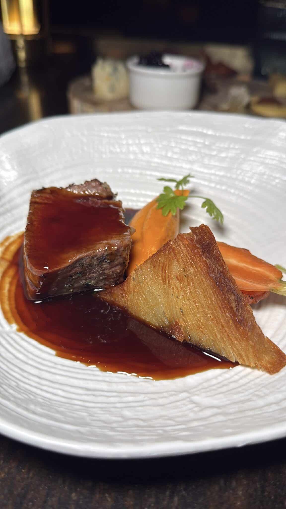 The dry-aged filet mignon lands squarely in classic territory and that’s not a criticism. A melt in your mouth and perfectly cooked, deeply flavorful, and comforting in its familiarity. The brown butter carrot purée and pommes millefeuille added richness without tipping the plate into excess. It delivers exactly what you want from a main course at this level. No gimmicks, no theatrics, just perfect execution.
